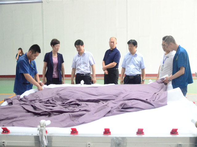 人力行政總監(jiān)孫玉濤介紹了公司發(fā)展的相關(guān)情況,工會(huì)主席鄭安江就公司在企業(yè)文化建設(shè)、員工利益保障等相關(guān)工會(huì)工作向調(diào)研組進(jìn)行了詳細(xì)匯報(bào)。隨后,胡少華一行與公司職工代表面一車間李西洪、家紡成品車間朱永亮和服裝車間溫永霞進(jìn)行了交流座談,詳細(xì)了解了公司在職工培養(yǎng)、福利待遇、權(quán)益維護(hù)等方面的具體情況。調(diào)研組一行先后參觀了公司工程技術(shù)研究院、創(chuàng)意中心、花布智能生產(chǎn)車間、家紡成品展廳及車間等處。胡少華表示,公司作為紡織印染行業(yè)的龍頭企業(yè),取得的成績有目共睹,并且公司在維護(hù)職工權(quán)益、企業(yè)文化建設(shè)、提升職工素質(zhì)等方面的工作經(jīng)驗(yàn)值得借鑒和推廣。