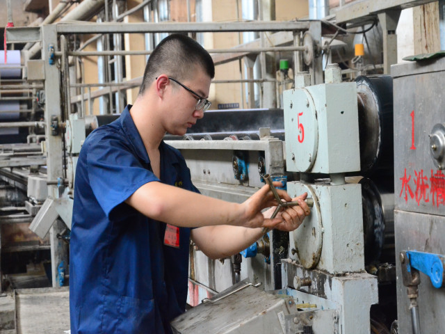 炎炎夏日里,人要時時注意防暑降溫,設備亦然。夏季車間溫度高,濕度重,對設備的維護保養要比其它季節更重要。一上班,面一車間設備人員李洪凱和師父韓海濤就開始了對車間印染設備的維護保養工作。清潔設備表面、檢查緊固零部件、檢查更換易磨損零件……內容看似簡單,但只要把這些簡單的基礎性保養工作做好,就能大大減少設備的檢修工作量和檢修次數,保障設備的順利運行。