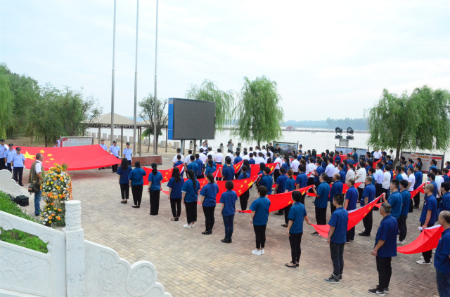 “身為華紡員工,時刻銘記我是炎黃子孫……”這是9月14日在周恩來紀念園(濱州)內出現的一幕情景:公司在組織有500多名員工代表參加的“向國旗敬禮”主題活動中,現場發布了《華紡員工熱愛祖國誓詞》,并在領誦者團委書記張巖冰帶領下齊聲誦出。據了解,公司為慶祝新中國成立70周年,進一步激發廣大員工熱愛祖國、熱愛事業的熱情,組織開展了一系列內容豐富的主題活動。