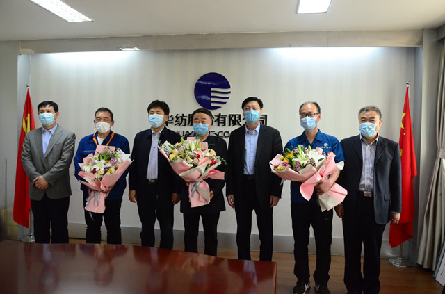 近日,五一勞動節來臨之際,濱州市市委常委、秘書長張延廷,市政協副主席、市總工會主席商玉昌,市總工會黨組書記、分管日常工作的副主席劉祖慶,市總工會黨組成員、副主席、經審委主任王恩東一行,來到華紡股份有限公司,為濱州市五一勞動獎章獲得者、服裝車間主任晁金光頒發勞動獎章,向全國紡織行業勞動模范、山東省勞動模范、公司黨委書記、董事長王力民,山東省勞動模范、電氣高級工程師趙奇生和晁金光三位企業勞模代表贈送鮮花、表達慰問,并與他們進行了深入座談。