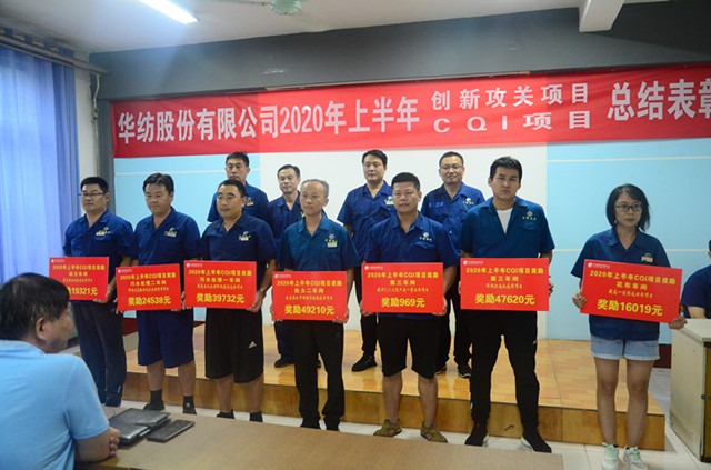 在CQI項目改進方面,公司展開CQI項目共計15項,在7項完成并受獎的項目中,4項超目標完成,實現收益303.8萬元。其中,花布車間完成并受獎的是“減少改漿,提高一次成功率”項目,面三車間完成并受獎的是“降低打底機疵布降等”項目、“提升5.11三防一等品率”項目,動力分公司完成并受獎的是“提高熱油機組經濟發(fā)電量”項目,水處理一車間完成并受獎的是“提高生化處理降低藥劑成本”項目,水處理二車間完成并受獎的是“降低次氯酸鈉噸水處理費用”項目,熱力二車間完成并受獎的是“改善熱水平衡提升換熱效率”項目。