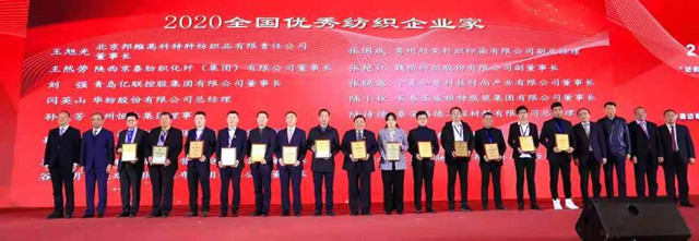 在本次大會上,由公司黨委書記、董事長王力民主創完成的“精益生產創客小組 助力高質量發展”管理創新成果,被中國紡織工業聯合會授予“管理創新主創者”一等獎;公司同時獲得“2020年度產品開發貢獻獎”“十大創新成果獎”等榮譽。公司總經理閆英山被授予“2020年全國優秀紡織企業家”榮譽稱號,并代表公司參加了“中國紡織服裝產品全生命周期評價小組”的啟動儀式。