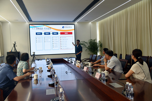 曹學軍一行先后參觀了花布車間、綜合辦公區(qū)、家紡展廳、研發(fā)創(chuàng)意中心、工程技術(shù)研究院、智云中心等部門和區(qū)域,并聽取了公司推進智能綠色工廠建設(shè)情況的匯報。