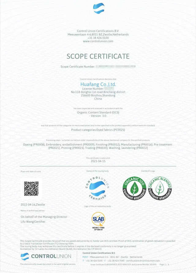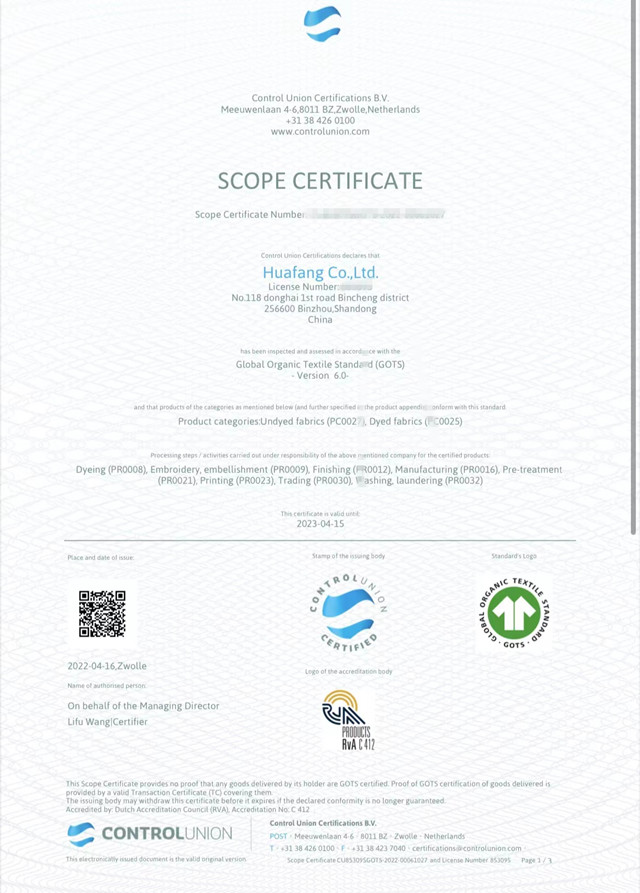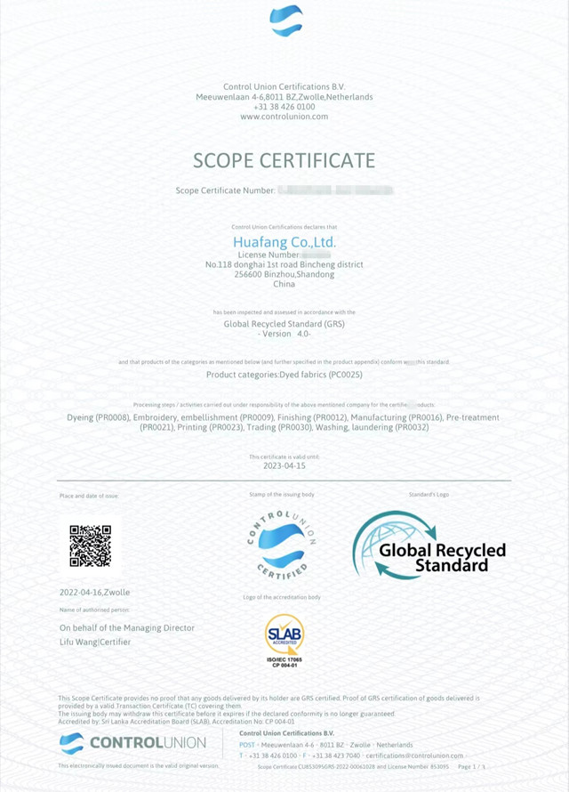 公司積極響應(yīng)國家發(fā)展改革委、商務(wù)部、工業(yè)和信息化部《關(guān)于加快推進廢舊紡織品循環(huán)利用的實施意見》,根據(jù)全球有機紡織品GOTS/OCS及全球回收標(biāo)準GRS等國際相關(guān)標(biāo)準, 2022年于3月份通過權(quán)威機構(gòu)的現(xiàn)場審核,順利取得GOTS/OCS/GRS證書。