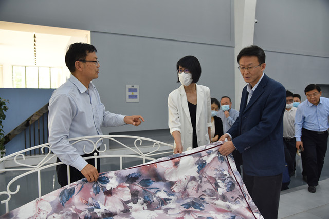 調(diào)研組一行先后到公司智云中心、檢測(cè)中心、綜合辦公區(qū)、服裝面料展廳、花布展廳、家紡展廳、創(chuàng)意設(shè)計(jì)中心、工程技術(shù)研究院、花布車間生產(chǎn)現(xiàn)場(chǎng)等實(shí)地調(diào)研,詳細(xì)了解了企業(yè)運(yùn)行、市場(chǎng)營銷、科技創(chuàng)新、戰(zhàn)略規(guī)劃等情況,詢問企業(yè)發(fā)展過程中遇到的問題和困難,并聽取了公司董事長盛守祥對(duì)公司總體生產(chǎn)經(jīng)營情況的匯報(bào)。調(diào)研組對(duì)公司多年來的發(fā)展成績給予了充分肯定,并表示華紡公司多年來深耕紡織印染領(lǐng)域,不斷做大做強(qiáng)、是一家高質(zhì)量發(fā)展、成長性良好的企業(yè);同時(shí),企業(yè)在發(fā)展的過程中積極履行社會(huì)責(zé)任,體現(xiàn)了企業(yè)的社會(huì)擔(dān)當(dāng)。