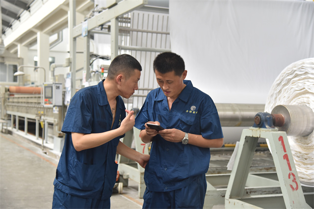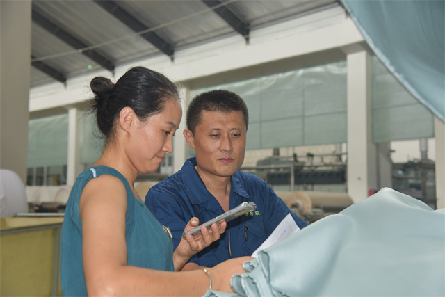 孫鎮身著工裝,每天巡回在車間前處理機臺之間,和暢的機聲成了他工作之時的伴奏。落實各機臺的計劃,組織各機臺生產跟進,管控本班的產品質量,對操作規范進行及時檢查、現場糾偏與指導培訓。他一心撲在工作上,每天忙得不亦樂乎,目標是帶領全班19名成員保質保量地完成車間下達的任務目標。他說,“做好生產工作有兩件法寶:一個是責任感,一個就是精益生產意識。”在孫鎮的心目中,作為公司的管理主線,精益生產需要全體“華紡人”共同傾心“打磨”,在時間里“磨”出真功夫來,干工作沒有捷徑,反復推敲,仔細琢磨;經過工作實踐的摸爬滾打,才能提升自身本領,才會使生產工作一步步精進。