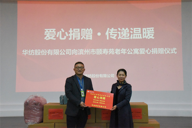 11月4日,公司舉行向濱州市頤壽苑老年公寓捐贈愛心物資的活動儀式。家紡分公司副總經理曲偉華、濱州市頤壽苑老年公寓院長鄢桂珍等參加了捐贈儀式。