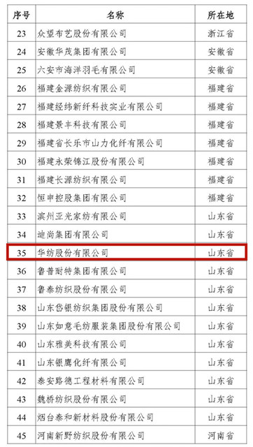 公司躋身全國重點培育紡織服裝百家品牌