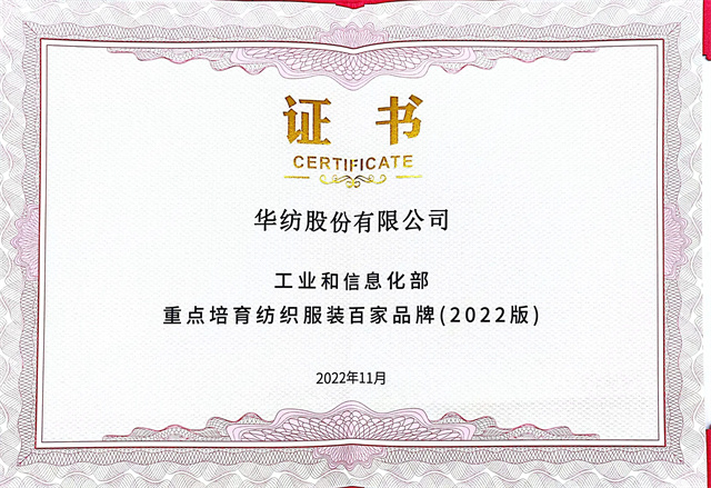 近日,由中國(guó)紡織工業(yè)聯(lián)合會(huì)、湖州市吳興區(qū)人民政府聯(lián)合主辦,以“新變革下的品牌價(jià)值提升”為主題的中國(guó)紡織服裝品牌大會(huì)在浙江湖州召開。大會(huì)期間,工信部發(fā)布“重點(diǎn)培育紡織服裝百家品牌名單(2022版)”名單,華紡股份有限公司入選。