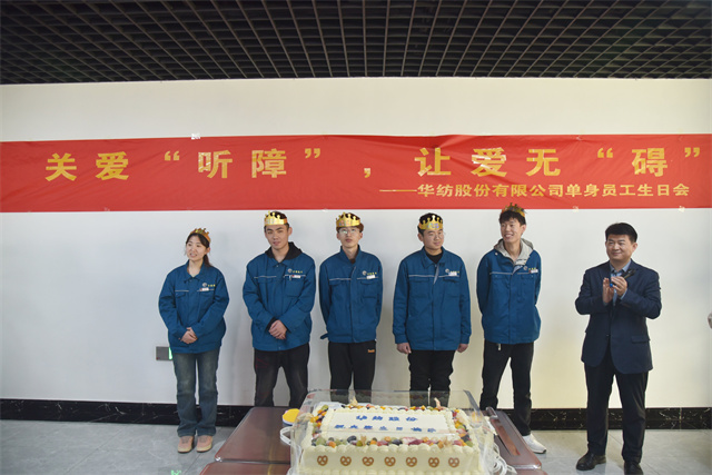 3月28日,公司黨委、工會、團委、關工委聯合舉辦了以“關愛‘聽障’”,讓愛無‘礙’”為主題的華紡股份有限公司單身員工生日會。公司黨委委員、人力行政副總經理孫玉濤,工會、團委、關工委主要負責同志、服裝車間相關負責同志以及30名聽障員工參加活動。