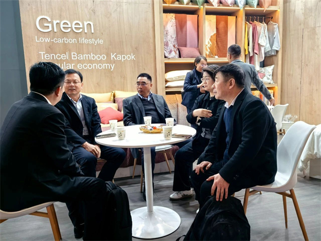 展會(huì)首日,中國紡織工業(yè)聯(lián)合會(huì)副會(huì)長楊兆華等領(lǐng)導(dǎo)專程到華紡股份展位參觀指導(dǎo)。領(lǐng)導(dǎo)們認(rèn)真聽取了家紡公司總經(jīng)理成汝海對(duì)家紡產(chǎn)品的介紹,仔細(xì)觀看了解了各類展品。楊兆華副會(huì)長對(duì)華紡股份有限公司在產(chǎn)業(yè)升級(jí)、產(chǎn)品結(jié)構(gòu)調(diào)整方面取得的成績給予了充分肯定,希望公司繼續(xù)加大研發(fā)投入,提升產(chǎn)品科技含量和附加值,進(jìn)一步加強(qiáng)品牌建設(shè),提高中國家紡產(chǎn)品在國際市場(chǎng)的知名度和影響力。