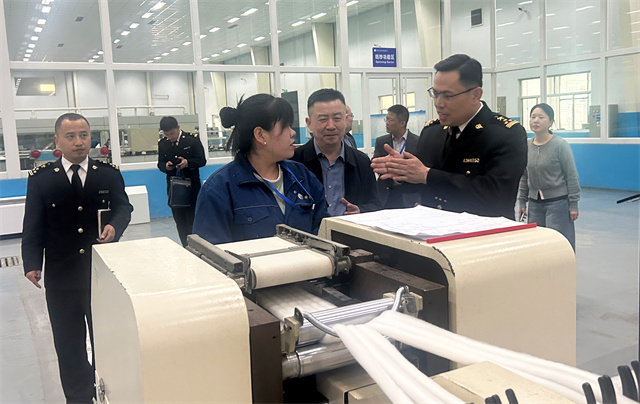 4月16日,濱州海關黨委書記、關長李光一行來公司參觀調研。濱州海關綜合業務一科科長劉金輝,綜合業務二科副科長朱士帥陪同調研。公司黨委委員、總經理閆英山,市場運營部綜合事務管理主任楊霞,華紡國際進口部經理韓黎明,服裝面料業務經理王新東,儲運部主管楊箐箐陪同。