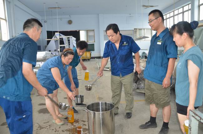 7月29日,當日濱州市溫度高達35℃,華紡股份有限公司管理者將冰好的橘子粉化制飲品到一線生產崗位,一一分發到正在當班的員工水杯中,緩解高溫為員工帶來的酷熱,送上一份清涼和關愛。