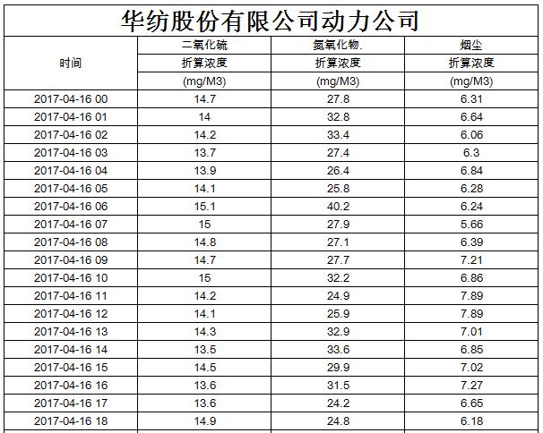 煙氣排放數(shù)據(jù)信息公開2017.4.16數(shù)據(jù)
