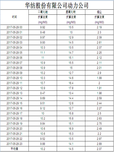 煙氣排放數據信息公開2017.5.29數據