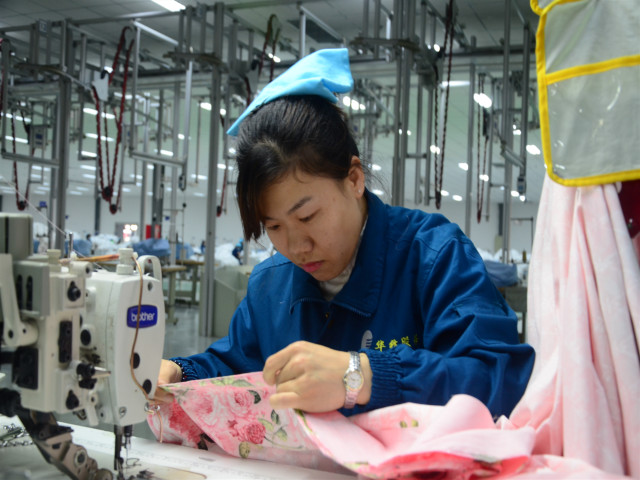 導讀:今年27歲的周之平是公司家紡成品車間吊掛二班的一名縫制工,以目前正在生產的一款被罩產品為例,她每天日均產量達到了220件,在公司同序列工種中保持領先。